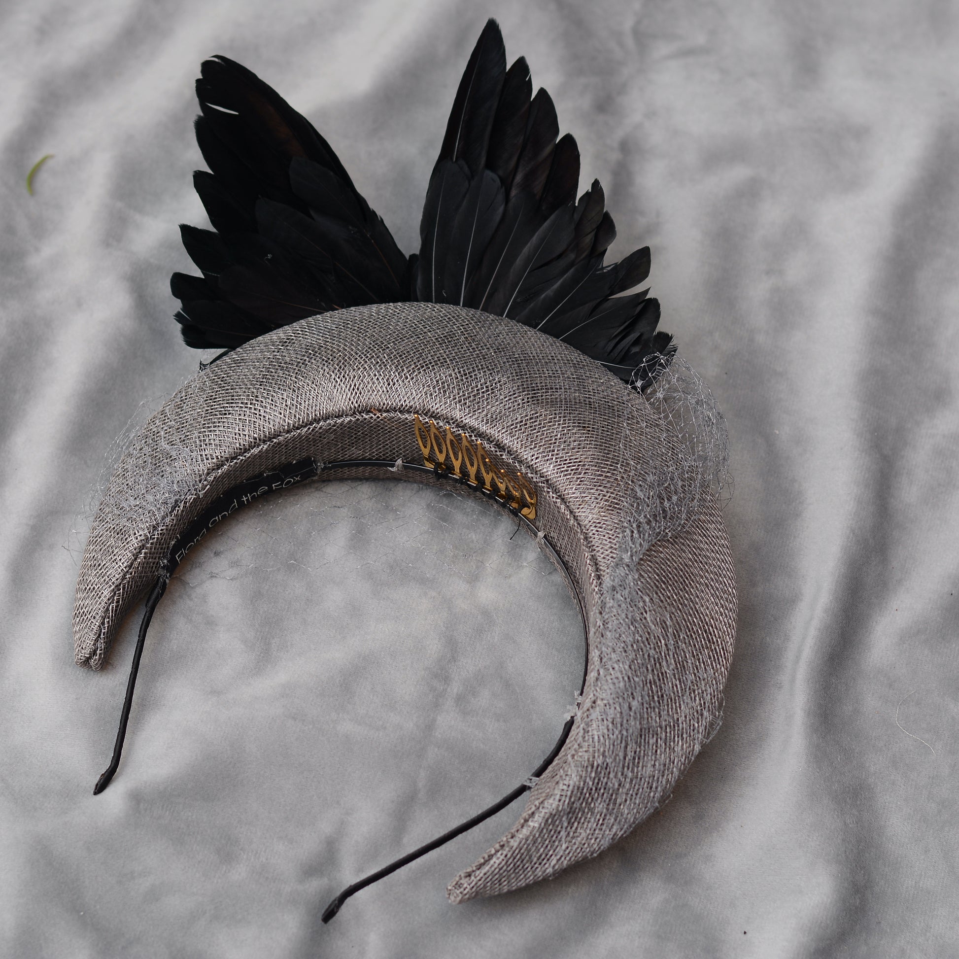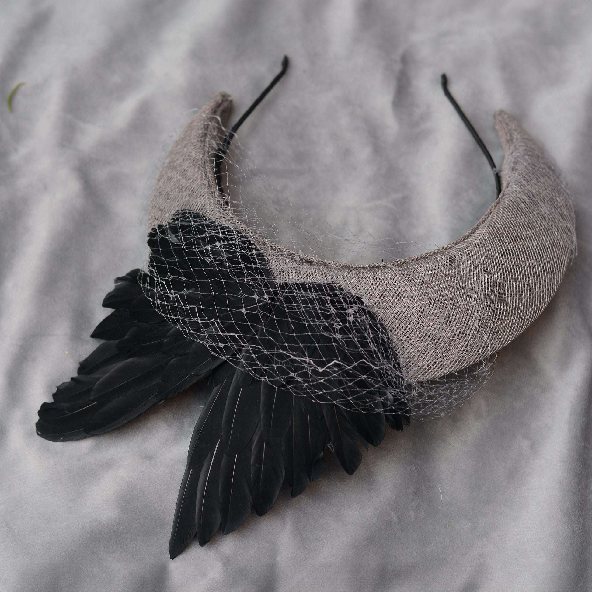 Bird Wing Black and Grey Halo Bandeau Headband Fascinator
