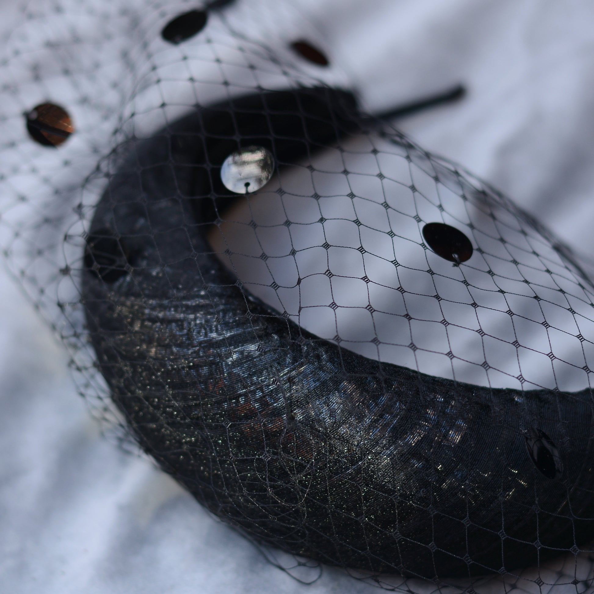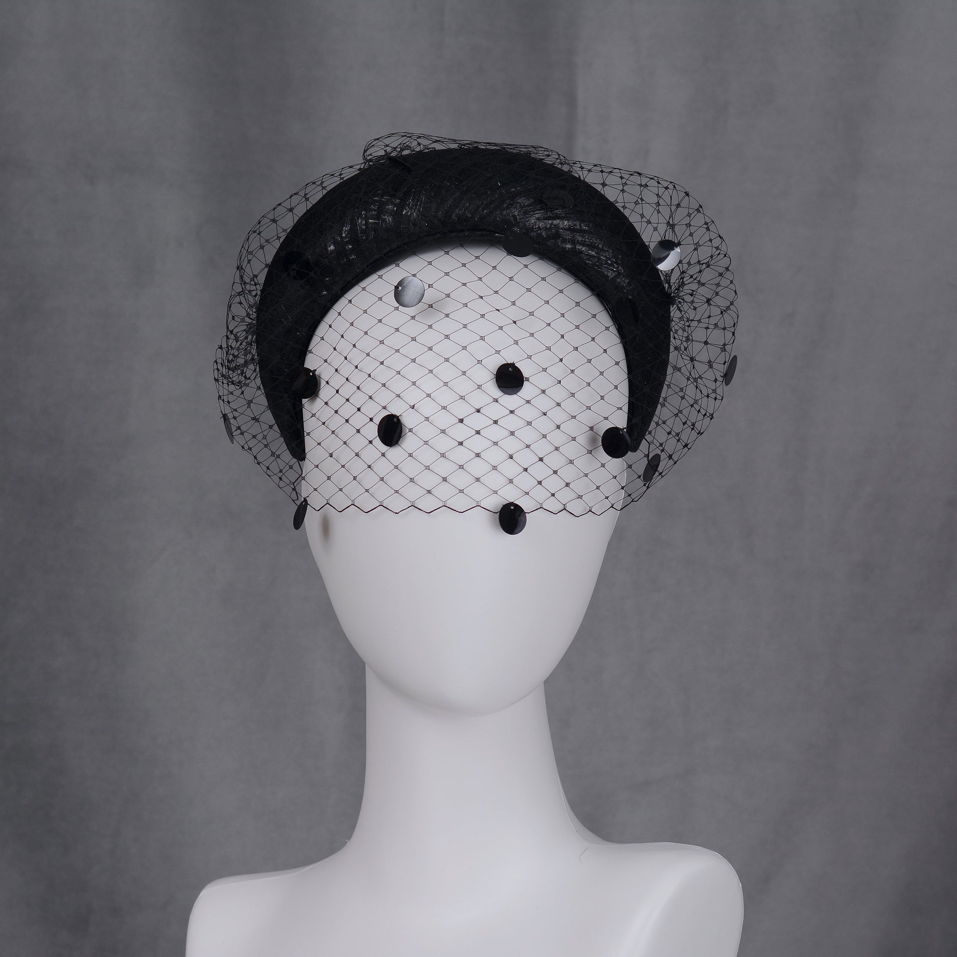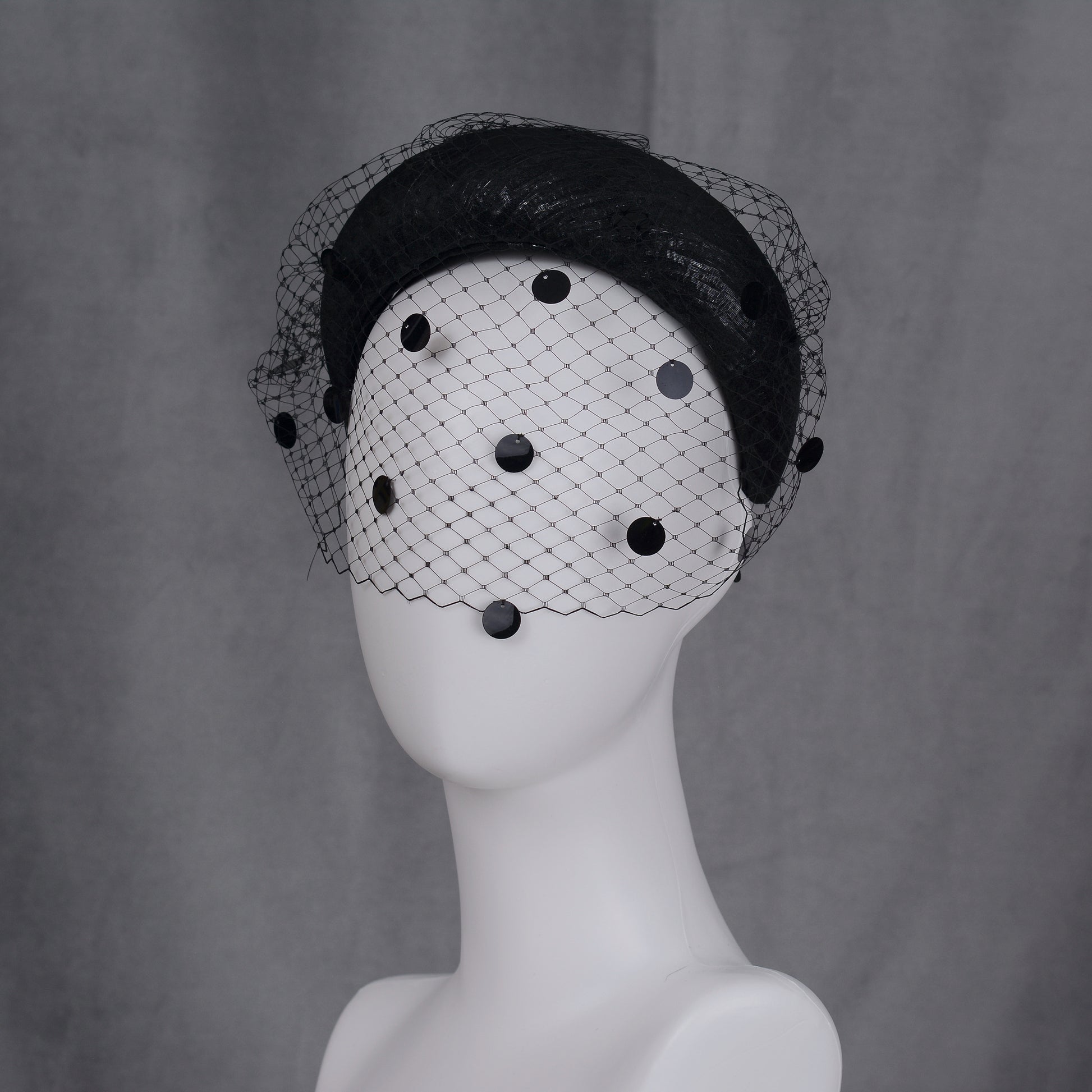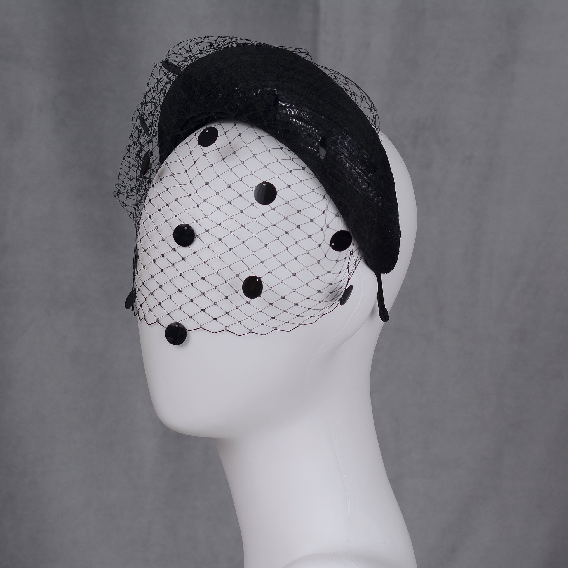 Black Headband Fascinator with Polka Dot Sequin Birdcage Veil