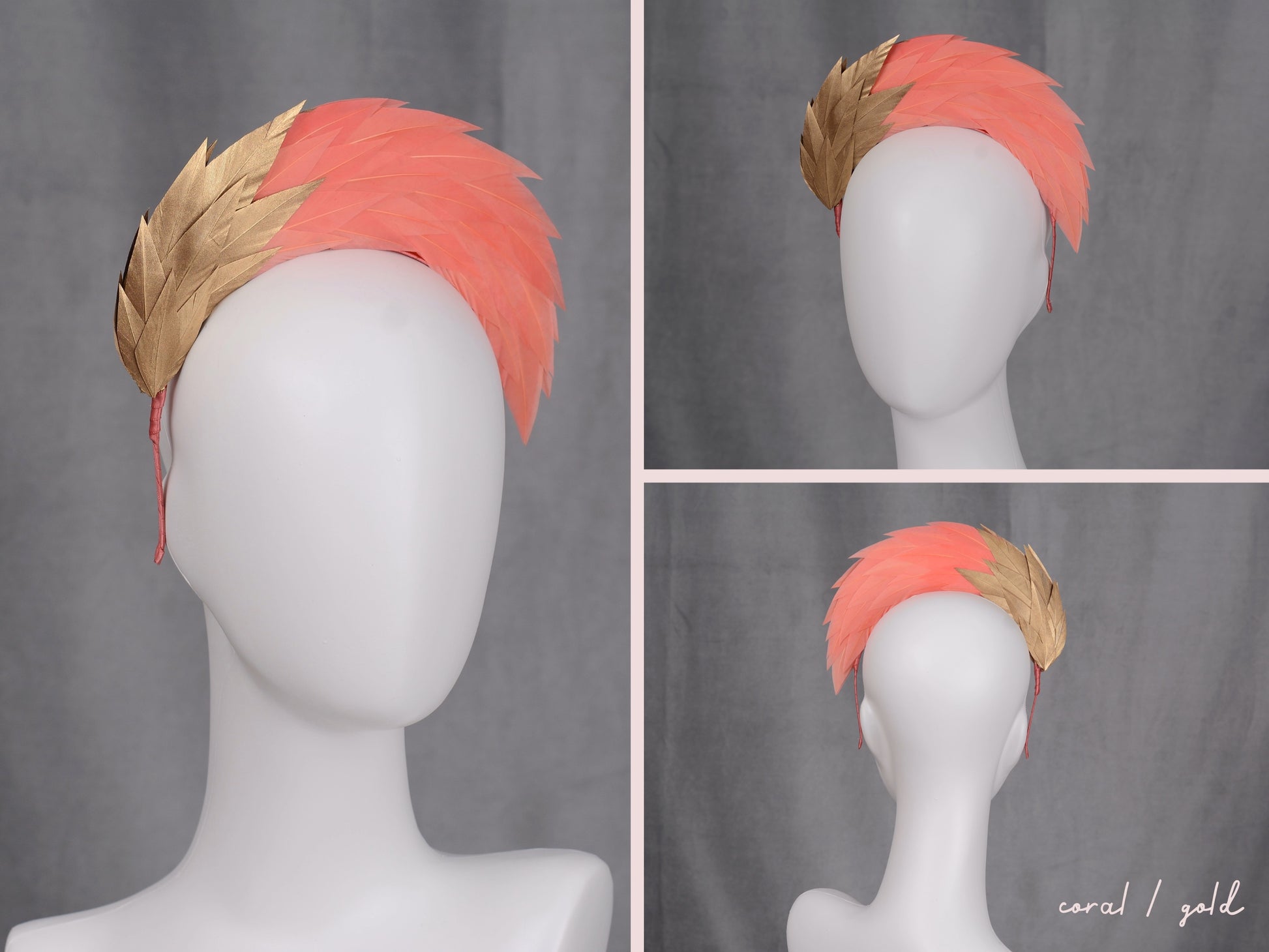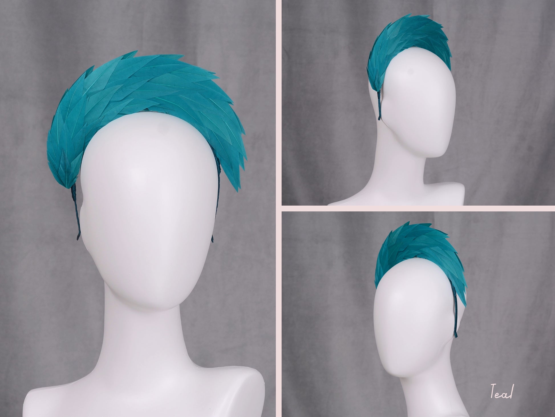 Beautiful and striking feather halo headband in a choice of colours. A stunning piece featuring hand-cut goose feathers that flow across the top of the head framing the face perfectly with plenty of drama. Measures approximately 6.5-7cm tall at the highest point.