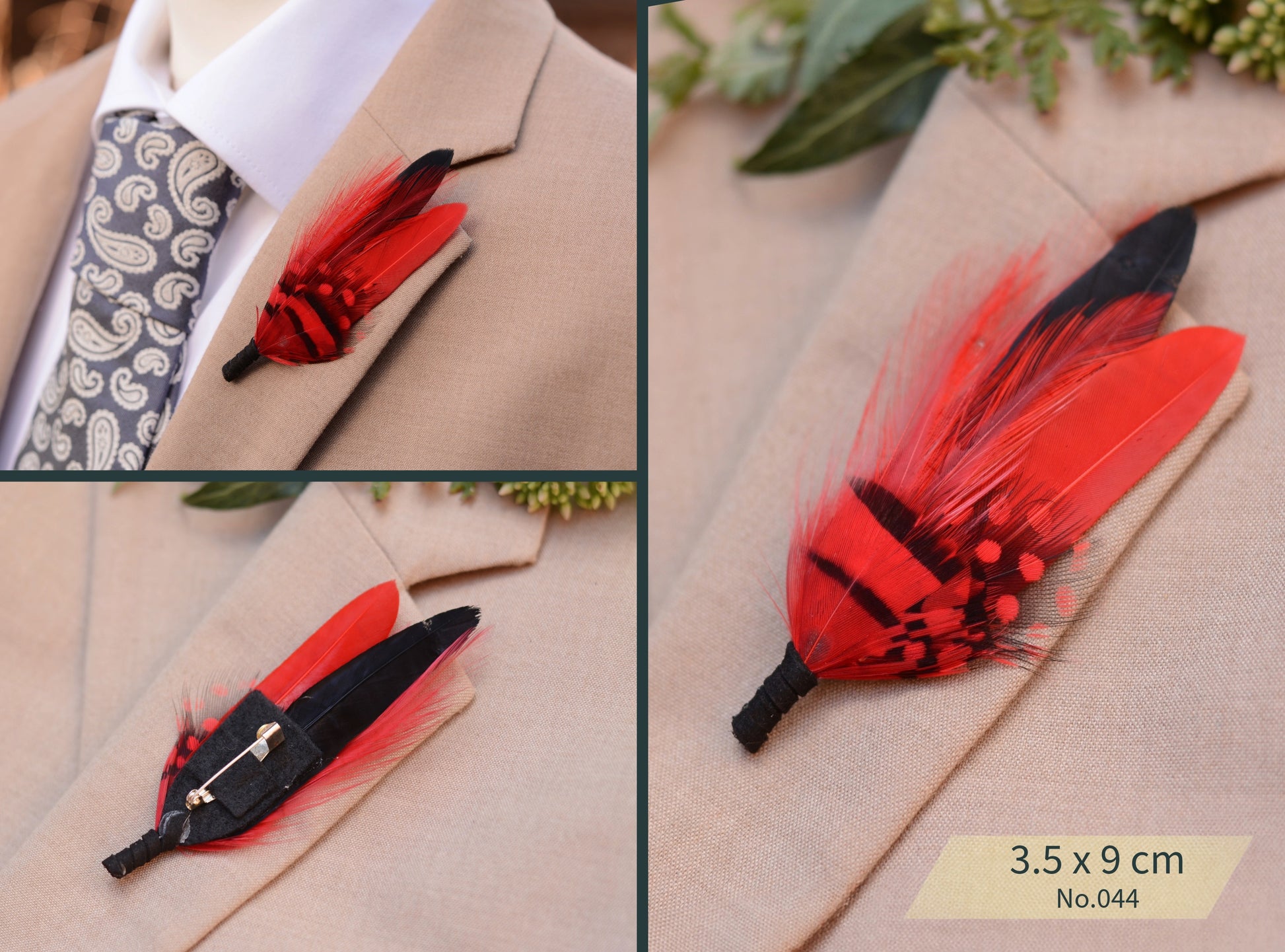 Red Feather Boutonniere / Hat Pin No.033, No.043, No.44 & No.052