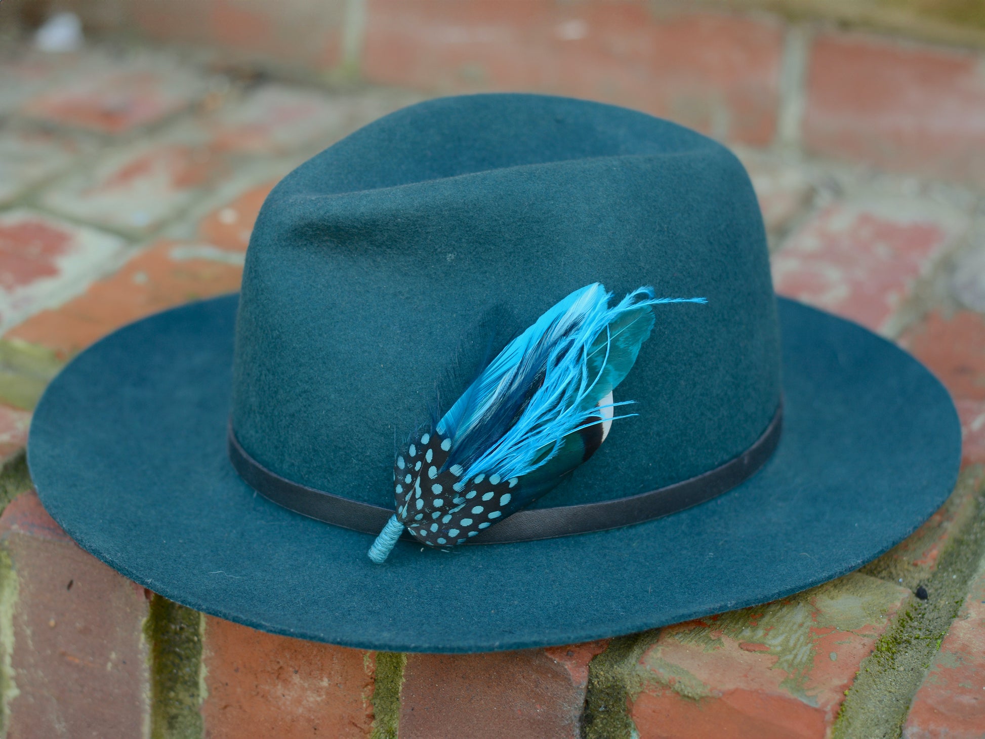 Teal, Turquoise and Blue Feather Hat Pin / Feather Brooch No.297
