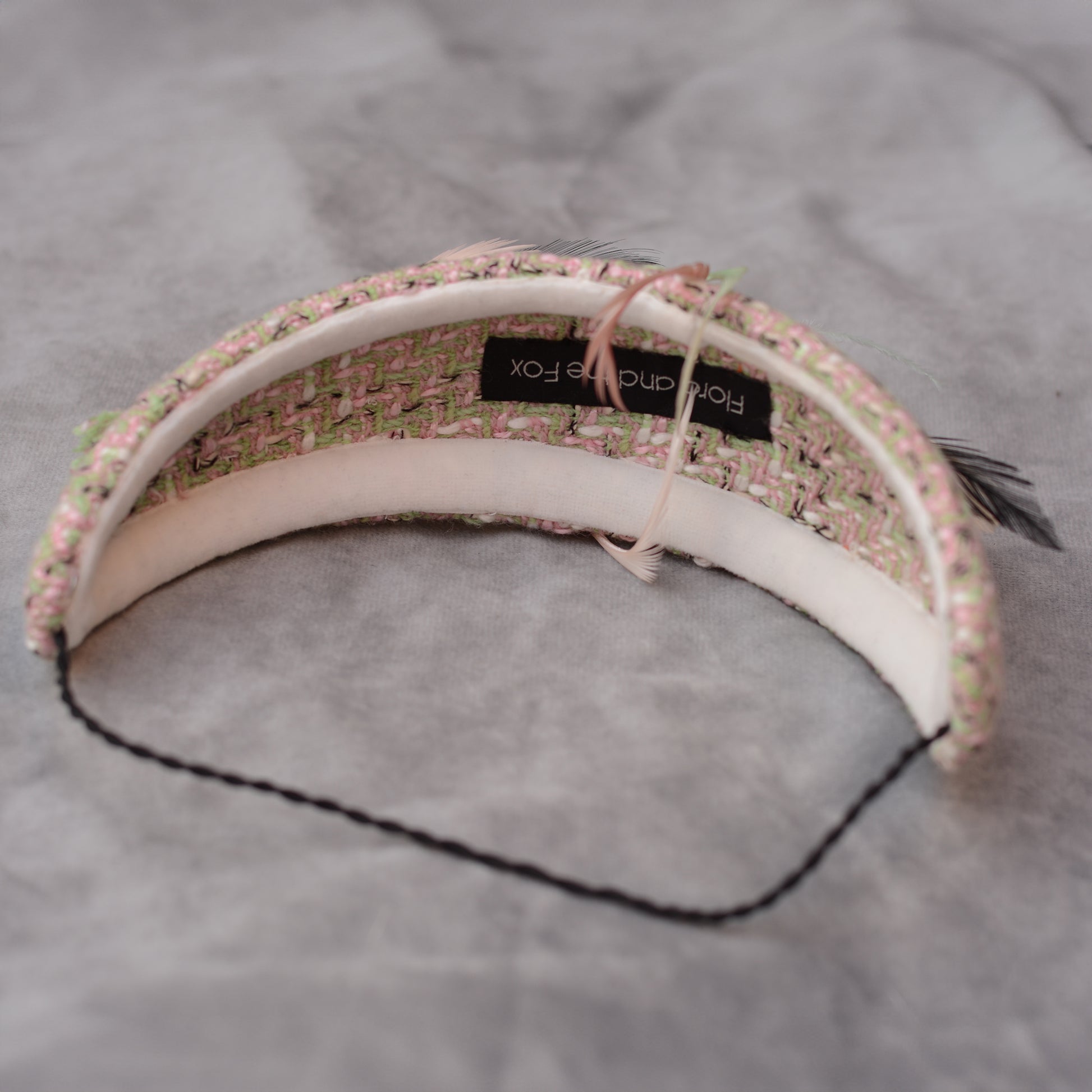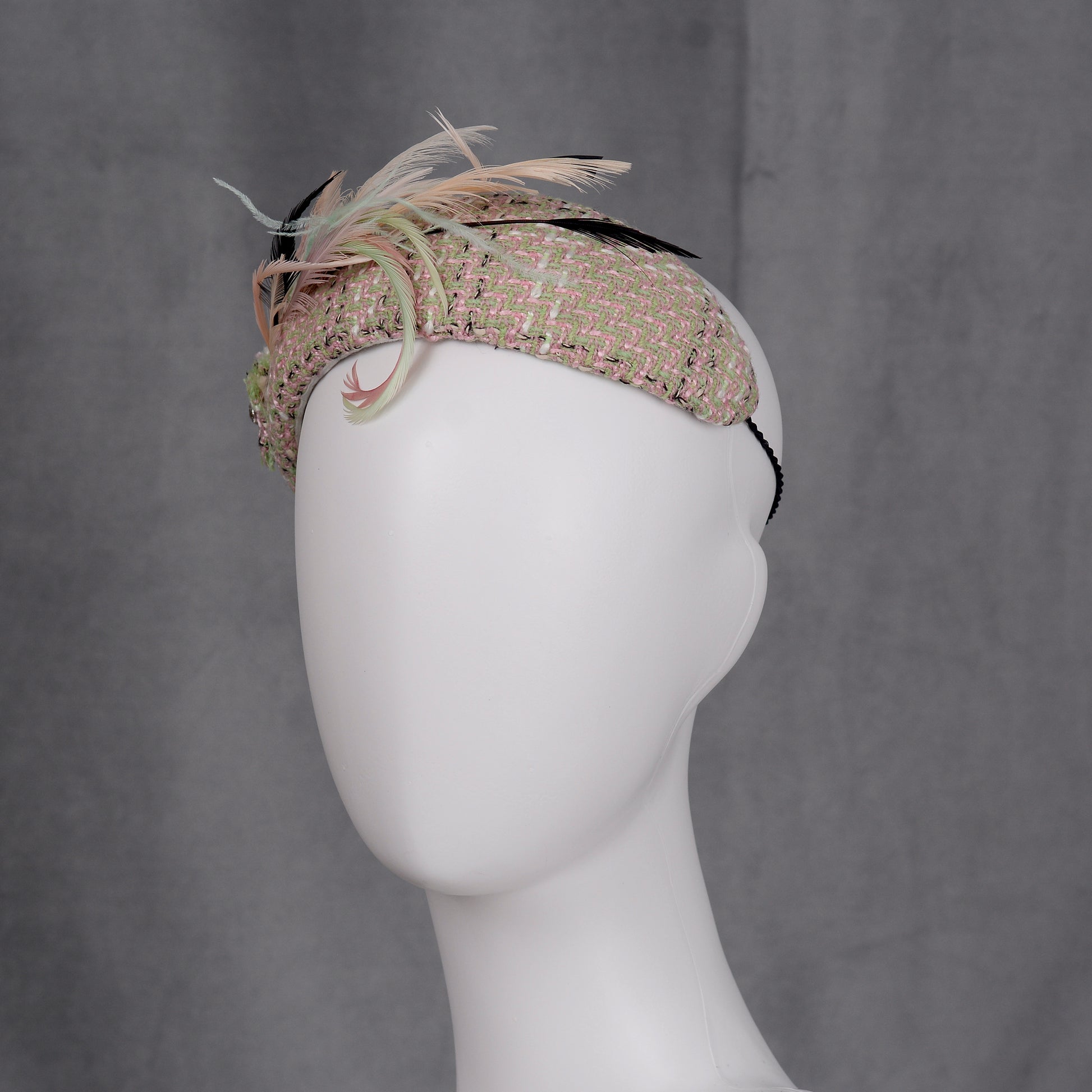 Tweed Pink and Mint Green Bandeau Fascinator with Feather Mount