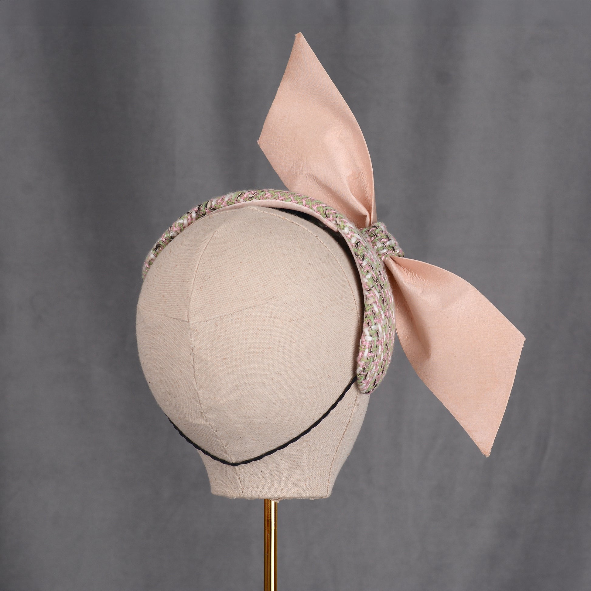 Tweed Pink and Mint Green Giant Bow Bandeau Fascinator